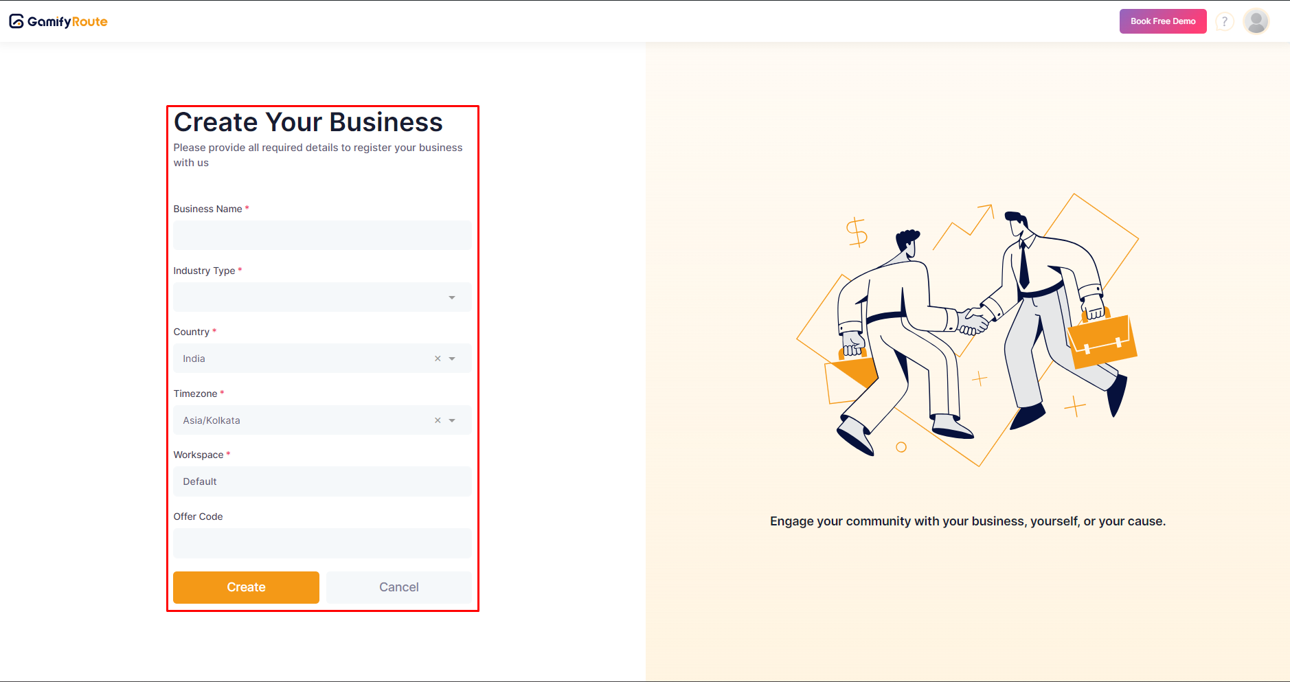 After logging in, you will be redirected to the "Create Your Business" screen. This screen requires you to fill in several details about your business.